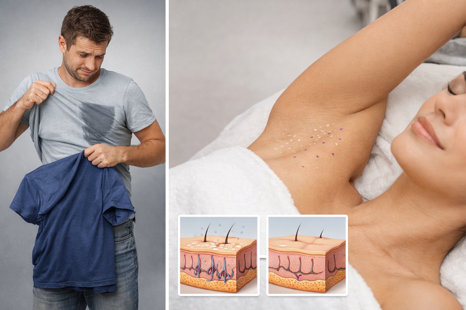 Вы меняете футболку дважды в день. Избегаете рукопожатий, потому что ладони постоянно влажные. Подбираете одежду не по вкусу, а по принципу «чтобы не было видно». Знакомо? Это не вопрос гигиены и не «просто особенность организма» – это гипергидроз, и он поддаётся лечению. Один из самых эффективных методов, который сегодня предлагает косметология, – инъекции ботулотоксина. Как ботокс помогает при гипергидрозе? Уколы работают точечно, без операции и реабилитации, а результат сохраняется до года.