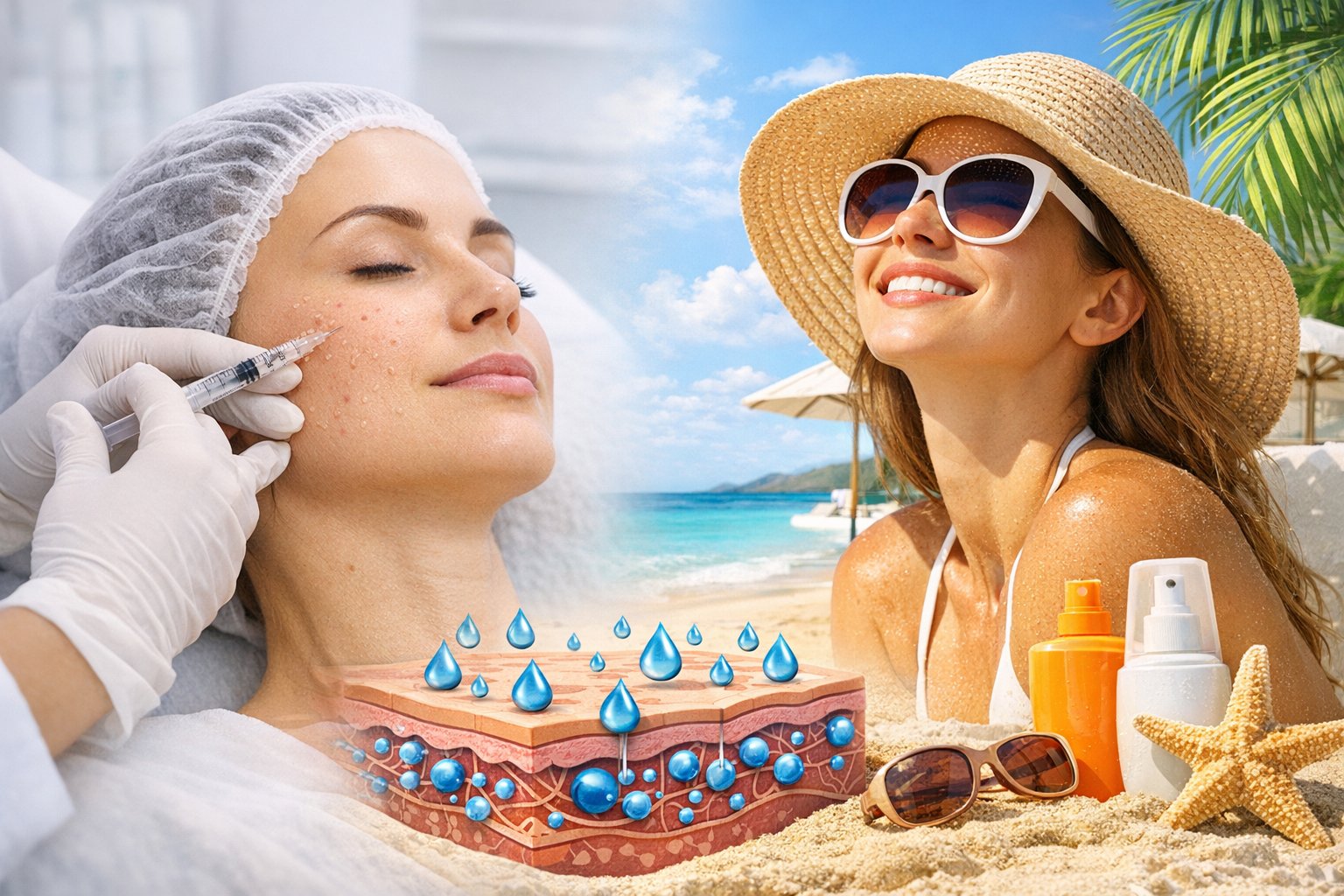 Важный момент: не планируйте сеанс накануне пляжного отдыха. После введения препарата коже нужно время на восстановление – минимум 10–14 дней. Если поездка к морю через неделю, биоревитализацию лучше сделать заранее или уже после возвращения.
