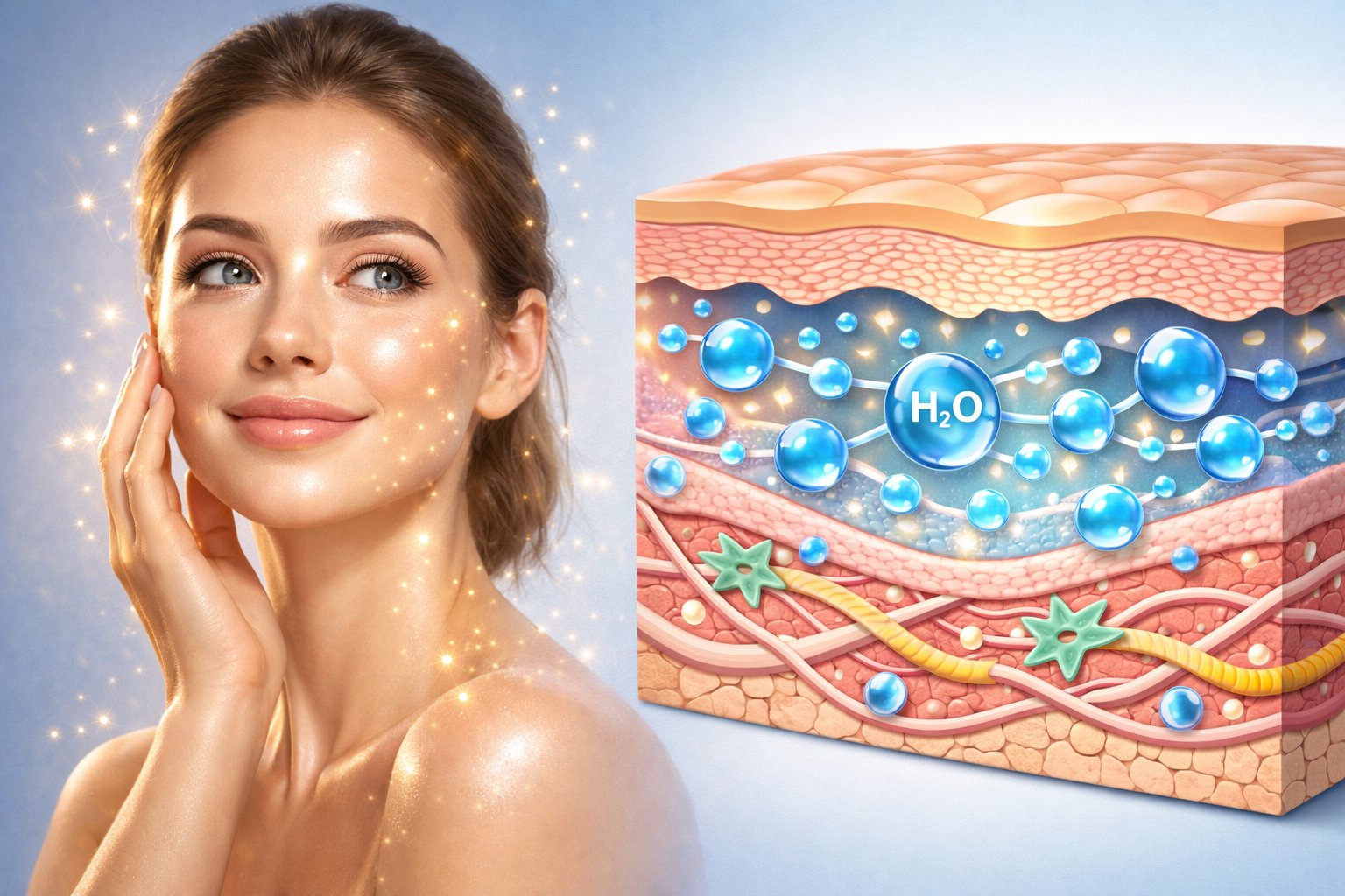 Сразу после курса биоревитализации пациенты описывают это одинаково: «кожа как будто светится изнутри». Без макияжа, без фильтра – просто другая кожа. Это не метафора и не эффект плацебо. За видимым сиянием стоят вполне конкретные биохимические процессы, которые запускает гиалуроновая кислота в дерме. Разберём, почему кожа светится после биоревитализации и что именно происходит.